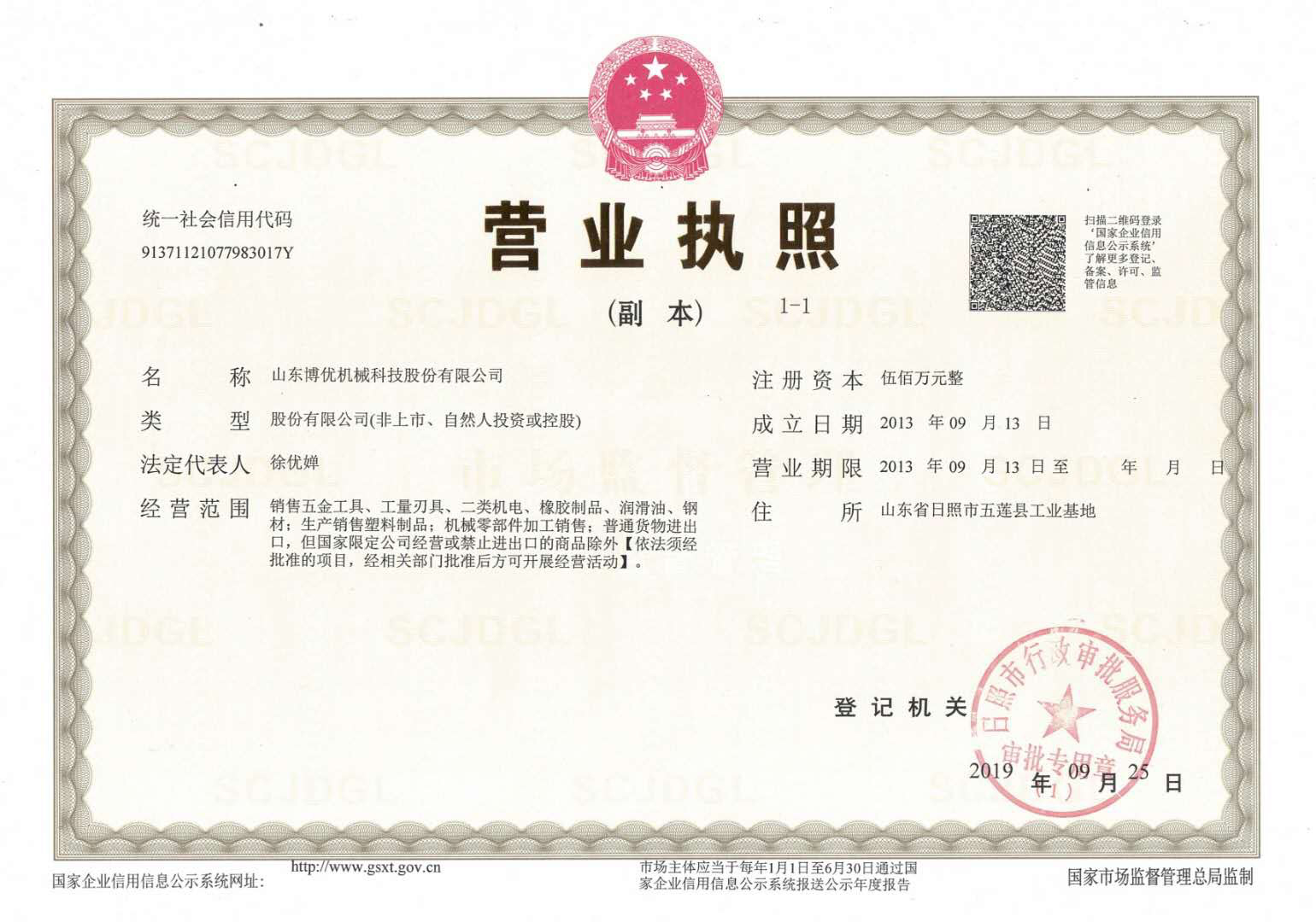 山東博優機械科技股份有限公司坐落在山東省日照市五蓮縣工業園(五蓮縣日照路與山西路交匯處)。